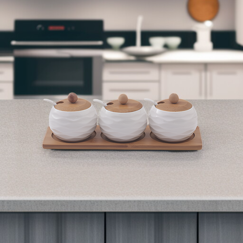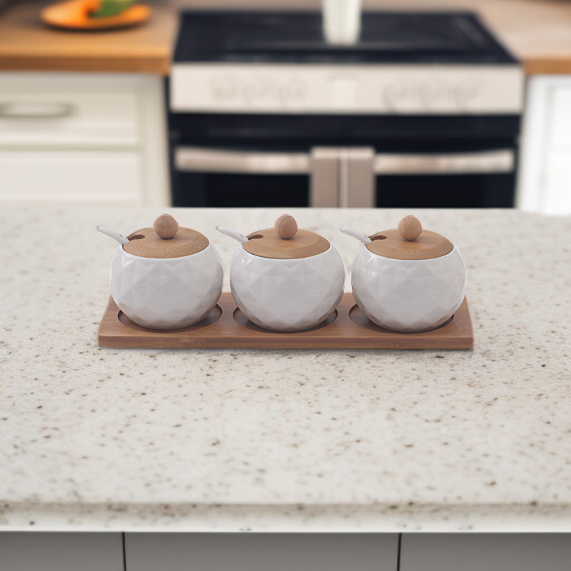 ● 日本風デザインの陶器製で、キッチンをおしゃれに彩る調味料入れセットです。